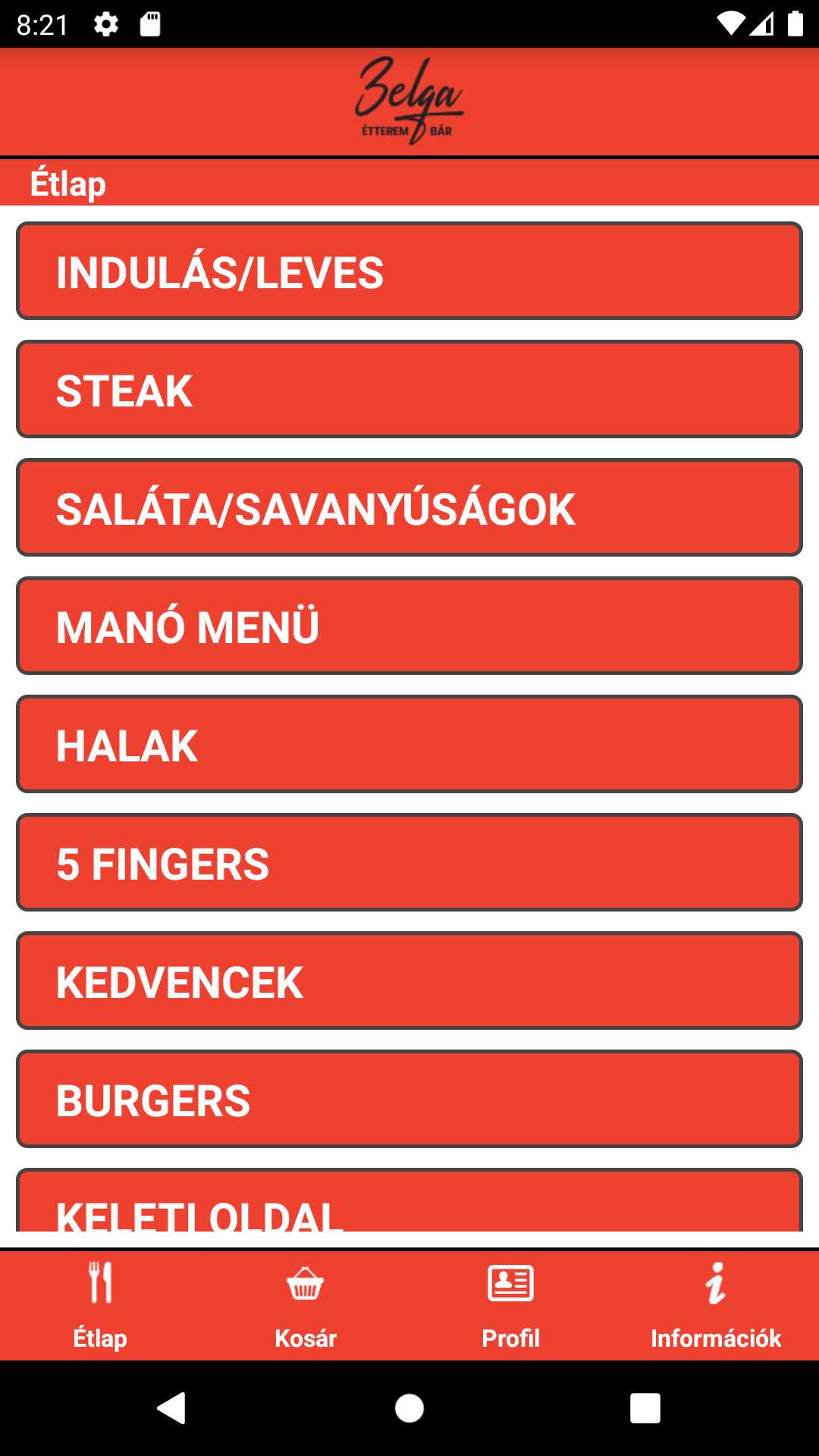 BelgaSorhaz.hu "SémApp" típusú éttermi honlap on-line rendelési lehetőséggel.
