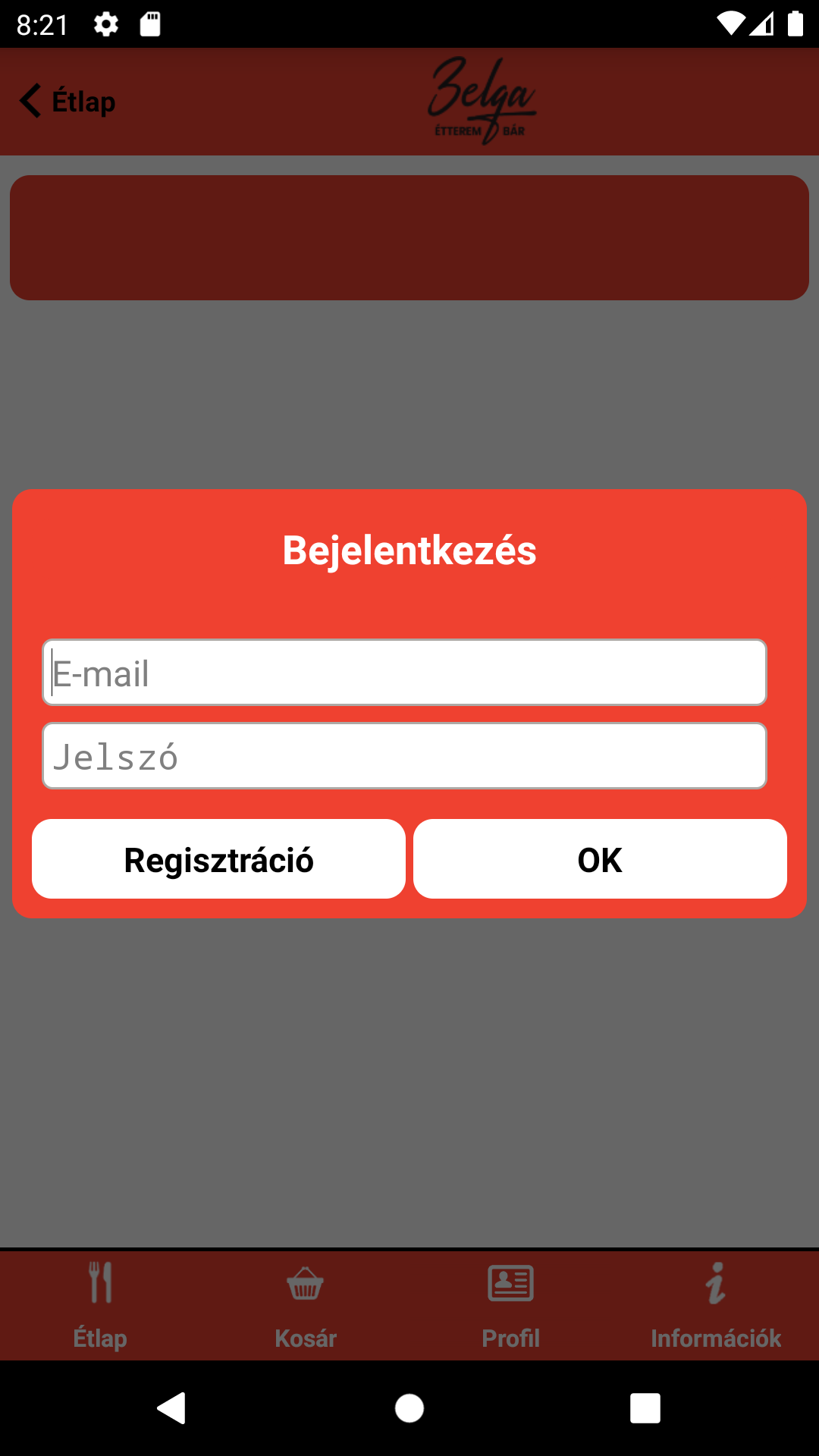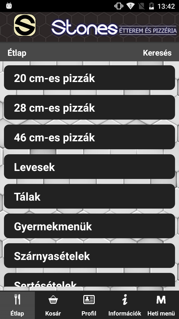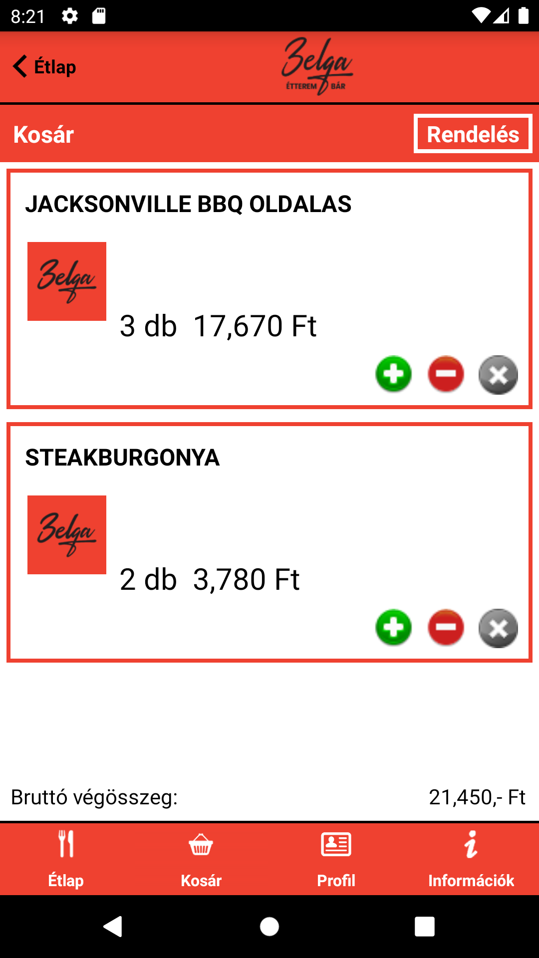 "SémApp " típusú Éttermi alkalmazás a belgasorhaz.hu honlappal összeköttetésben