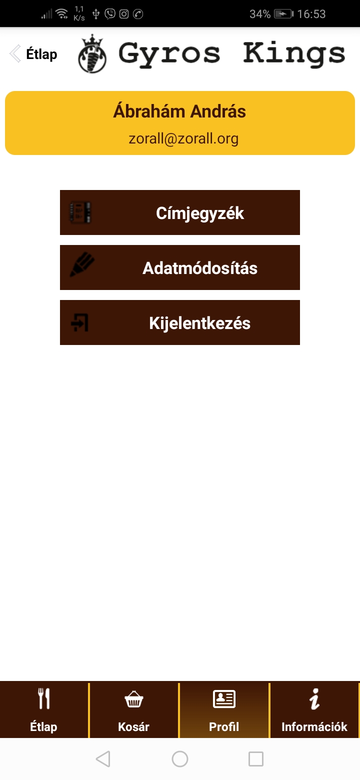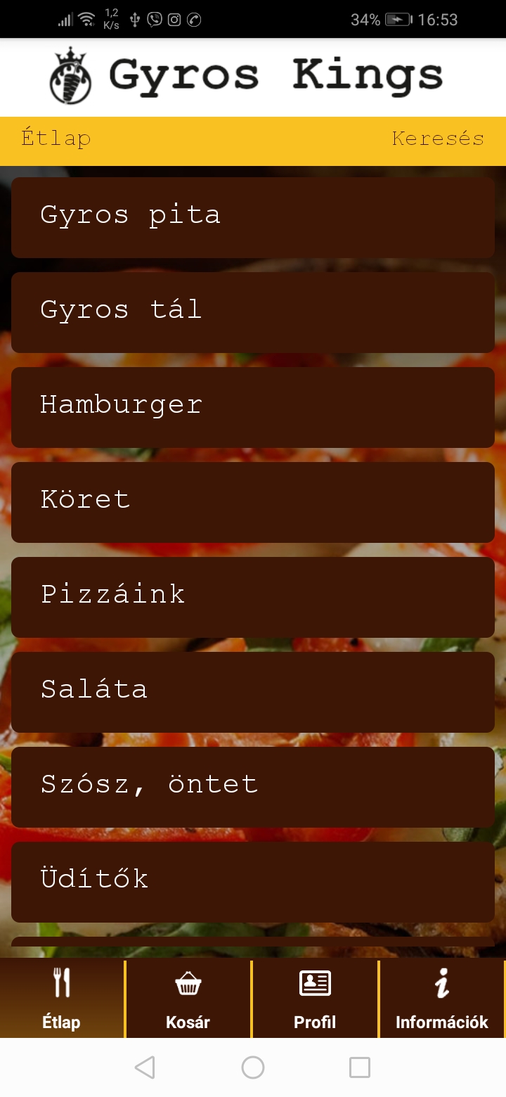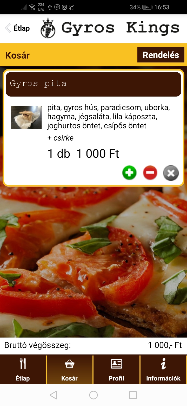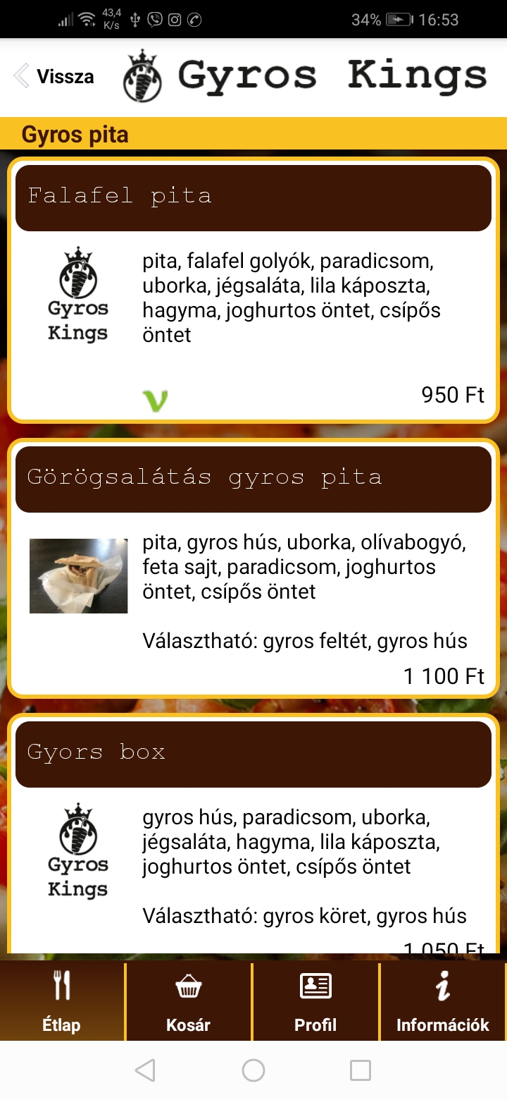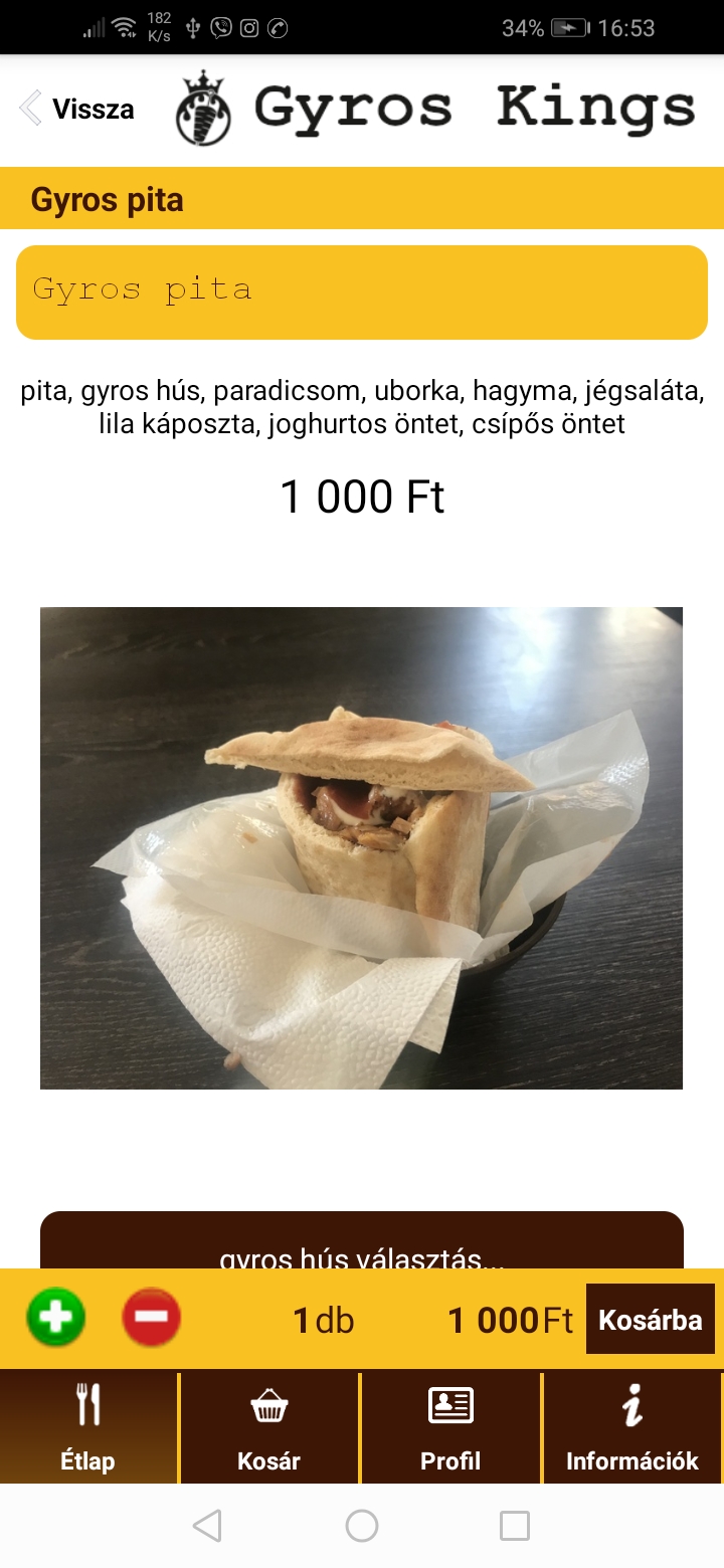 "SémApp " típusú Éttermi alkalmazás a gyroskings.com honlappal összeköttetésben