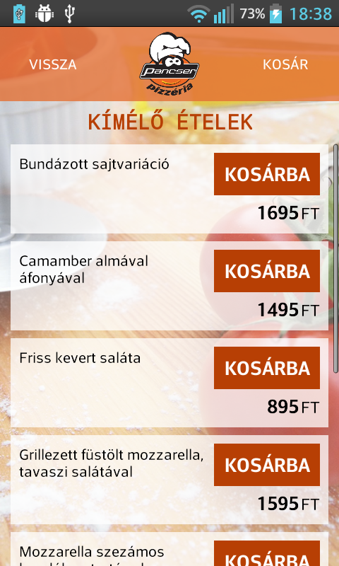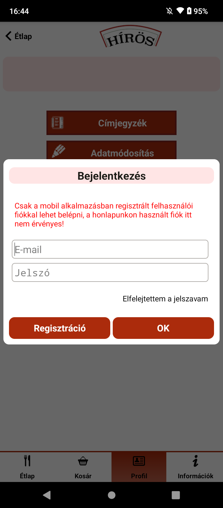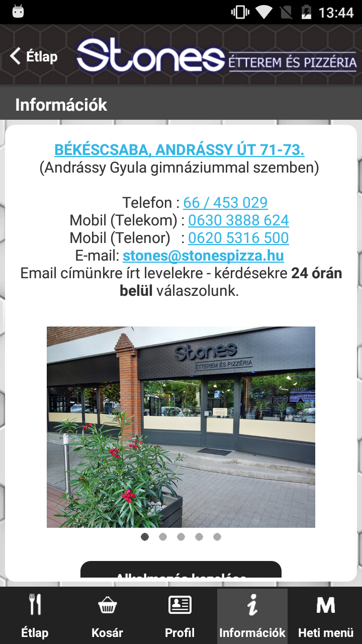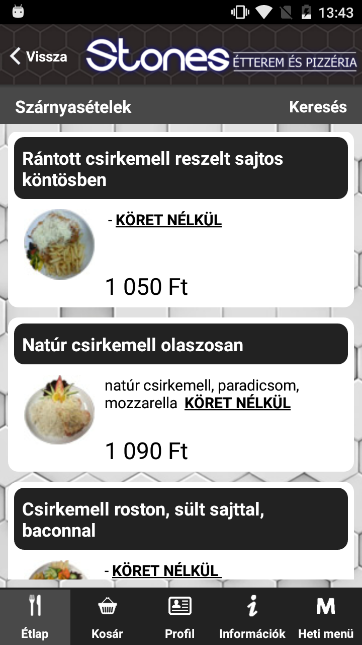 "SémApp " típusú Éttermi alkalmazás a etteremcegled.hu honlappal összeköttetésben