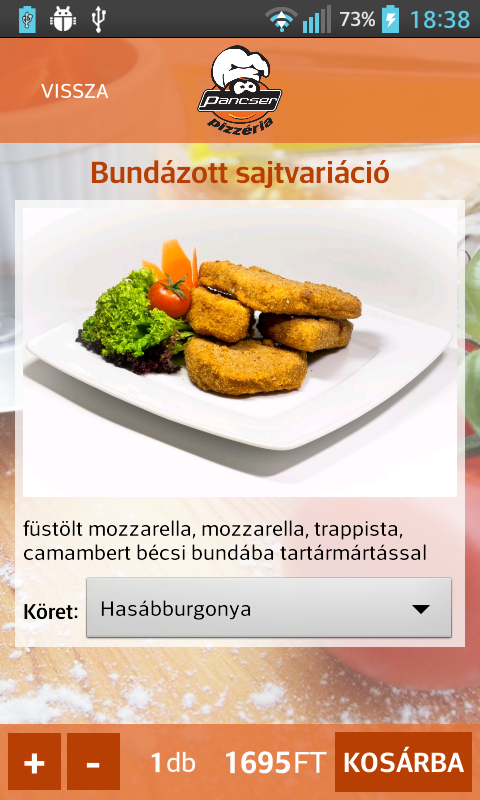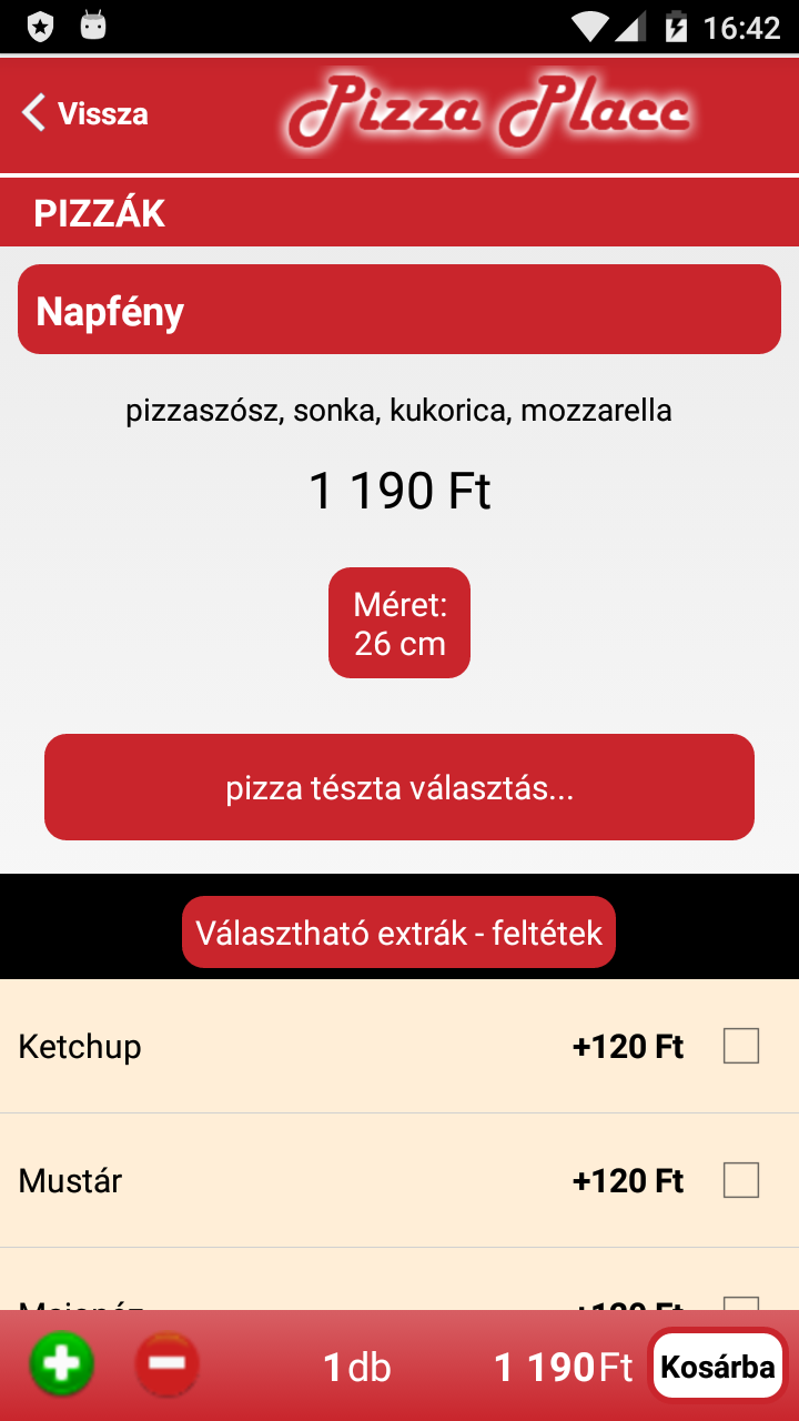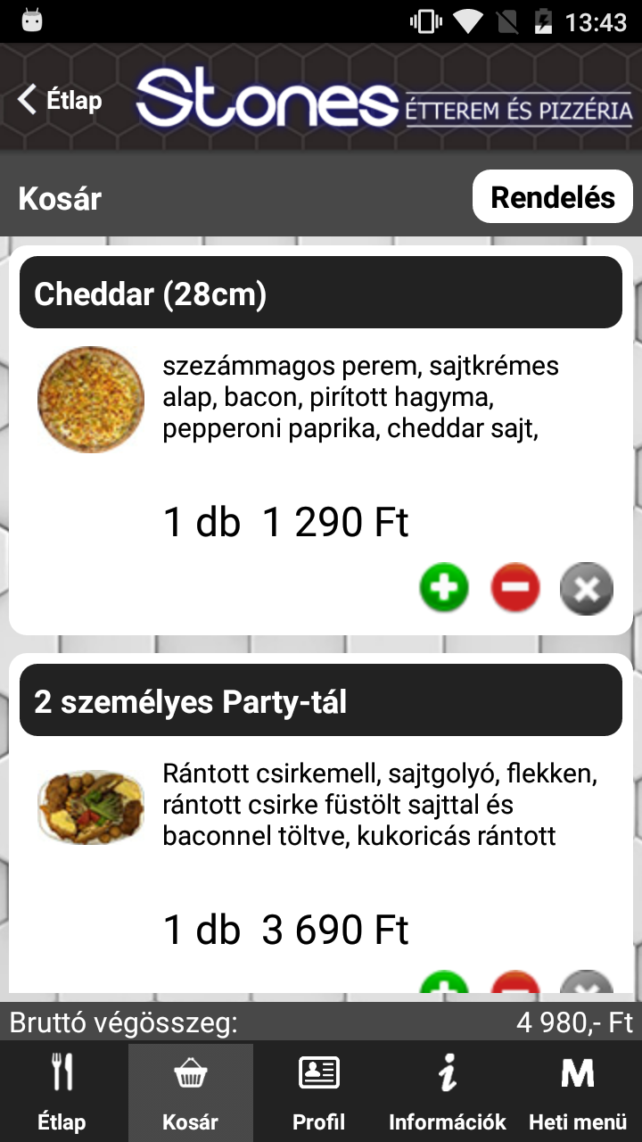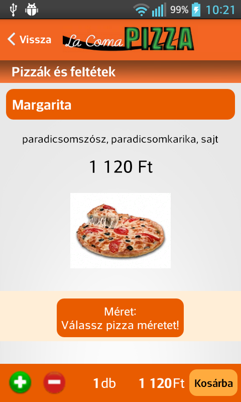 "SémApp " típusú Éttermi alkalmazás a pizzaplacc.hu honlappal összeköttetésben