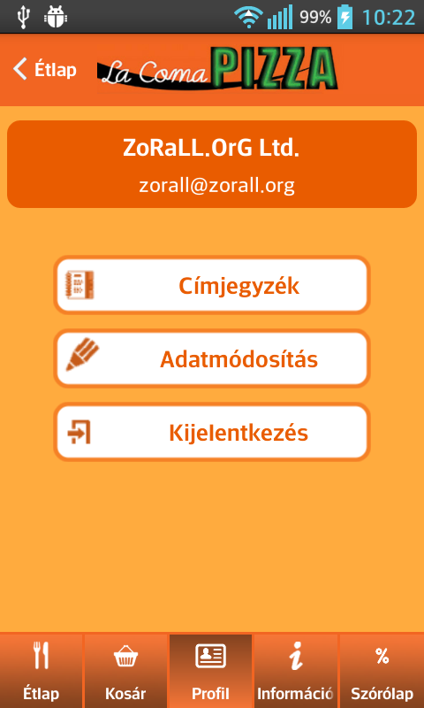 LaComa.hu "SémApp" típusú éttermi honlap on-line rendelési lehetőséggel.