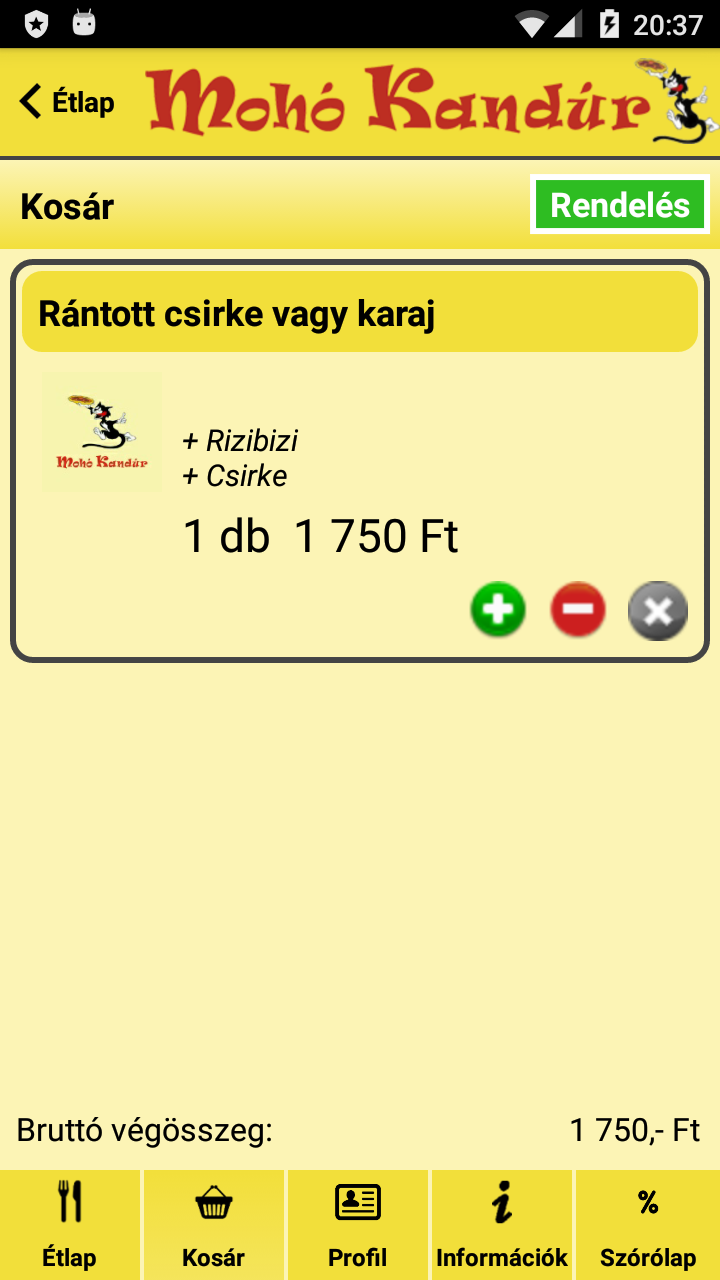 Figyeli a nyitvatartási időt, a minimum rendelési összeget, szállítási- és csomagolási díjat, új verzió jelenléte esetén felajánlja a frissítést
