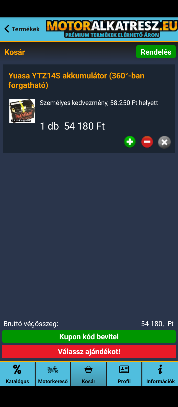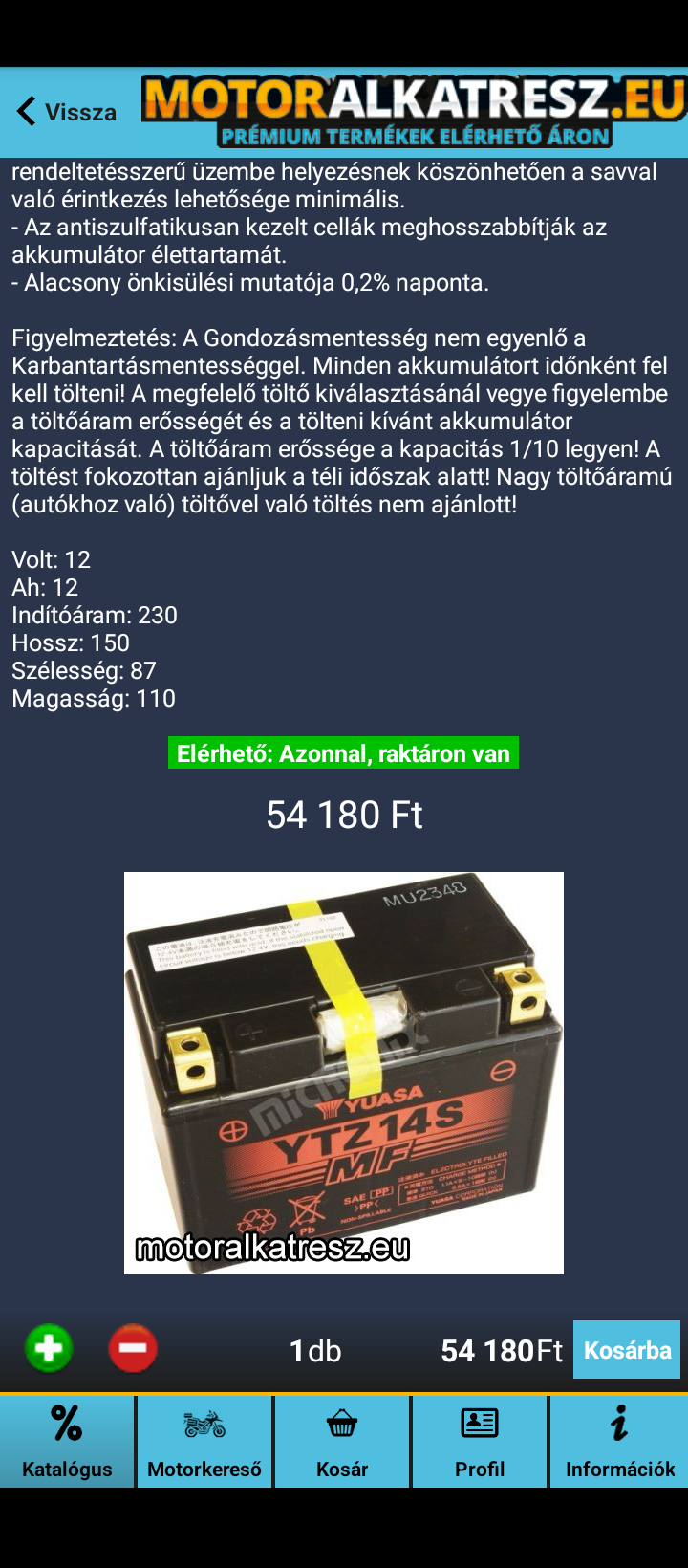 Kosárba helyezés darabszám megadással, mely a kosárban módosítható