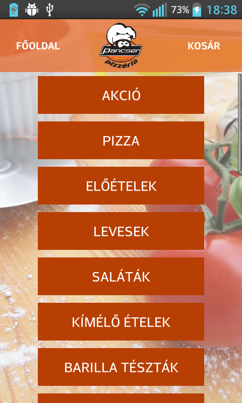 "SémApp " típusú Éttermi alkalmazás az andrettipizza.hu honlappal összeköttetésben